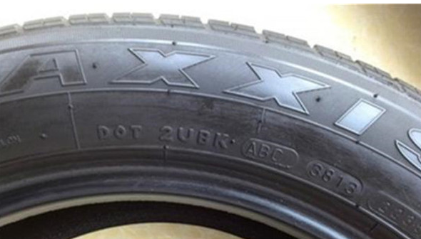 ????一般在輪胎的外側都有一串數字和字母,如下圖所示的數字“3813”,就是輪胎生產的日期,后兩位代表年份,也就是2013年,38表示輪胎是在13年的第38個周期生產的,也就是266天,共計8個月,所以輪胎是9分份生產的。