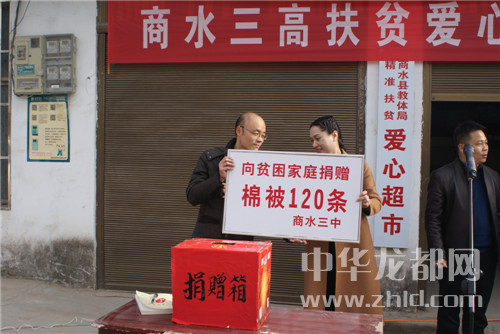 ????中華龍都網訊(周口報業全媒體記者? 付永奇 通訊員 魏海濤)12月26日,由商水縣教育體育局發起的“愛心超市”,迎來了商水三中“扶貧愛心捐贈”日,商水三中共捐贈棉被120條、衣物198件。捐贈儀式在商水縣魏集鎮洪橋村舉行,縣委常委胡國勝、縣教體局局長鄭春來、魏集鎮鎮長衛春忙、商水三中董事長王莉芳等出席活動。