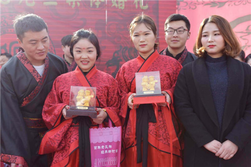 中華龍都網訊(周口報業全媒體記者 徐松 通訊員 胡恩來 文/圖)1月1日,鄲城縣文明辦、縣總工會、團縣委、縣婦聯,組織16對新人在鄲城世紀廣場共同舉辦主題為“丹城佳緣、緣定今生”集體婚禮,以此破除“天價彩禮”和奢侈浪費陋習,倡樹婚事簡辦、勤儉節約新風。