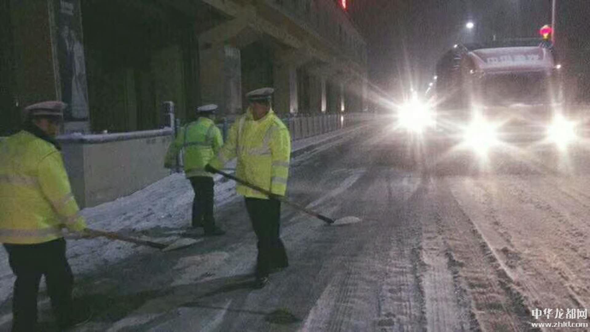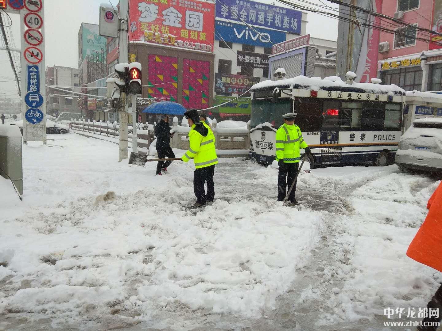 中華龍都網訊(周口報業全媒體記者  韋偉  通訊員  王佳佳 )“加派警力到各個橋梁涵洞,持續清掃路面,防止結冰!”1月4日下午六點,沈丘縣城仍是白雪飄飛,天還沒黑,一道加急令,讓忙碌了一天一夜的交警們打起了十二分的精神,繼續全員上路,不停不歇地進行掃雪及撒鹽除冰工作。