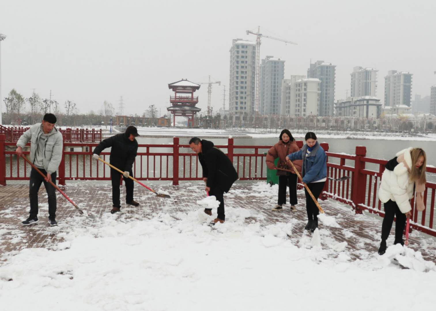 中華龍都網訊(周口報業全媒體記者馬治衛 通訊員洪濤 傳保)1月7日,鹿邑縣市政園林中心全體人員與十余名志愿者一起到上清湖公園打掃積雪,方便群眾在上清湖游樂。