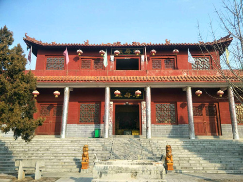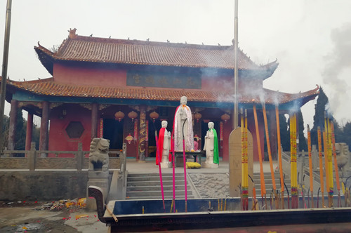 在西華這片古老又神秘的土地探尋盤古女媧創世文化,自然少不了拜謁昆山女媧宮。這座宮殿位于西華縣昆山辦事處山子頭村,因為傳說這里是女媧的居住地,所以在西華人心目中有著不可替代的地位。2018年元旦前夕,我們驅車前往,進入山子頭村一路西行直達盡頭,女媧宮就赫然于眼前了。待記者在宮門前站定,不經意回望來路,竟發現眼前是一條坡度明顯的下坡路。見記者詫異,一旁的村民笑著說:“山子頭嘛,就是說這里是山嶺的頭兒,女媧宮就在最頂上。”