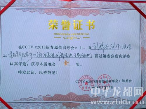 中華龍都網訊(周口報業(yè)全媒體記者馬治衛(wèi))1月21日,CCTV第六屆新春原創(chuàng)音樂盛典暨頒獎盛典在北京舉行,太康籍詞作家任治森原創(chuàng)歌曲《美麗普弄我家鄉(xiāng)》榮獲2018新春原創(chuàng)歌曲金獎。