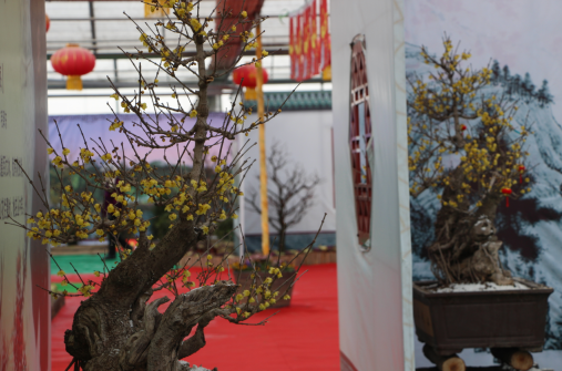 今天上午,大河客戶端記者在梅花展廳看到,不同品種的梅花被做成了盆景造型,配以雪花、茅屋、窗臺點綴,形成一道道獨特的景觀。怒放的花朵、含羞的花苞,數(shù)千平米的展廳內香氣四溢,惹得游人如癡如醉。