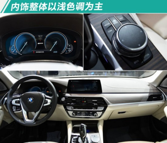 寶馬全新5系插電混動版內飾主體以淺色調為主,擁有多達11種色調的氛圍燈以及多塊大尺寸屏幕的組合,包括10.25英寸中央液晶觸控屏、12.3英寸的可編程全電子儀表盤、面積增大70%的全彩平視顯示系統以及7英寸后排智能觸控系統。作為一款中大型豪華轎車,新車前、后排座椅均帶有主動通風和電動調節功能,中控儲物區還可通過無線充電技術為智能觸控鑰匙進行充電,而帶有星空車頂的全景天窗也是同級獨有。