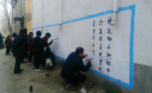 中華龍都網(wǎng)訊(周口報(bào)業(yè)全媒體記者 高洪馳 通訊員徐濤)為進(jìn)一步增強(qiáng)群眾脫貧致富的信心和決心,鄲城縣委、縣政府依托本縣“中國(guó)書法之鄉(xiāng)”的優(yōu)勢(shì),緊扣“脫貧致富奔小康”主題,在全縣23個(gè)鄉(xiāng)鎮(zhèn)(辦事處)1228個(gè)自然村組織舉辦脫貧攻堅(jiān)知識(shí)萬(wàn)人書畫文化下鄉(xiāng)行活動(dòng)。自活動(dòng)開展以來(lái),近萬(wàn)人次的書畫家已書寫脫貧攻堅(jiān)作品36840幅,每村墻體書畫作品30幅左右,義寫春聯(lián)4萬(wàn)余幅,受到了廣大群眾的歡迎。
