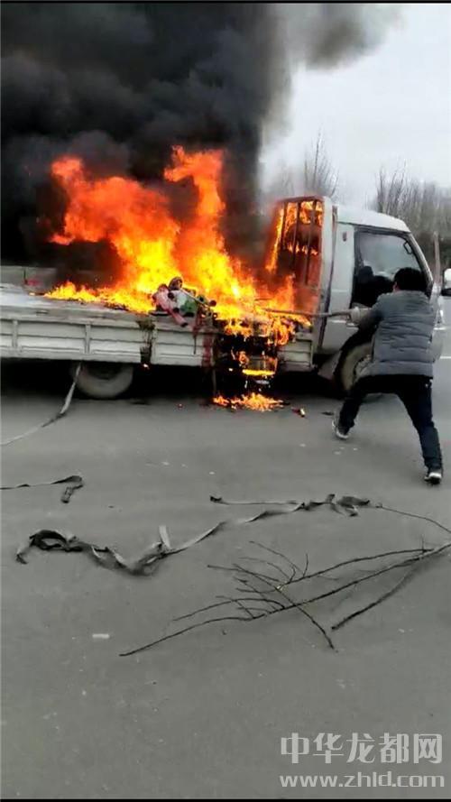 中華龍都網(wǎng)訊(周口報業(yè)全媒體記者馬治衛(wèi)通訊員王立平)2月27日中午13:00時,太康縣百米大道一輛滿載家具的車輛在行進(jìn)途中突然著火,濃煙夾雜火苗很快蔓延整個路面,車上的家具隨火勢迅速燃燒,路人不禁驚呼:“失火了!失火了!”