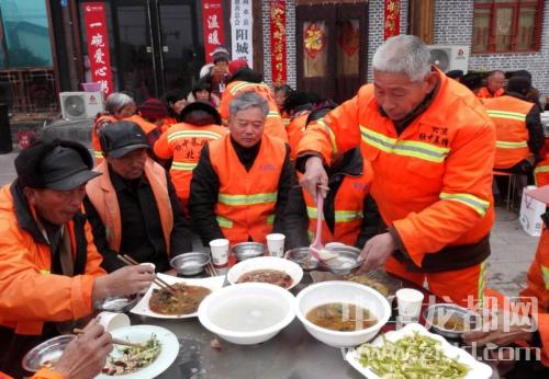 中華龍都網訊(記者 付永奇 通訊員李文濤 )3日2日是農歷正月十五,商水縣百名環衛工人中午大聚餐,吃上熱氣騰騰的菜肴和甜味可口的元宵。
