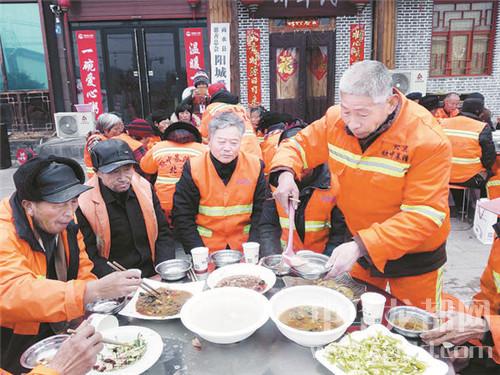 3日2日是正月十五,商水縣百名環衛工人中午大聚餐,吃上熱氣騰騰的菜肴和香甜可口的元宵。