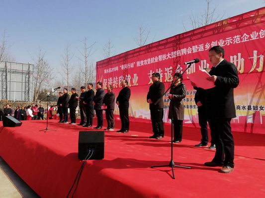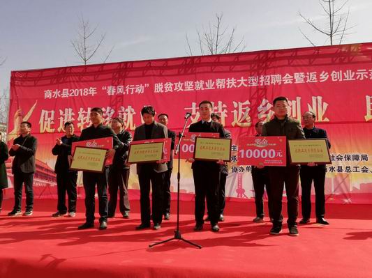 會上,縣委、縣政府授予商水縣紫金置業、周口正念創業孵化器、河南省元來農業科技、商水縣萬和園花卉種植合作社等公司“返鄉農民工示范企業”榮譽稱號,授予王鵬飛、李紅雷、蘇桂州、宋銀花、劉天華、張金波、任聯軍、葉天力、羅國昌、劉書顯等“返鄉創業標兵”榮譽稱號。