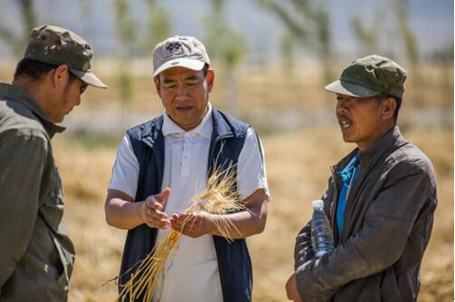 2017年9月是新疆哈密的小麥收割季,全國人大代表、治土人黨永富在田間考察化肥減量、農業提質的實際效果。
