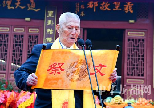 隨后,莊炎林、杜豫、宋鎮豪等嘉賓及省內外工商、文化等行業精英代表依次登上統天殿月臺,向人文始祖太昊伏羲氏敬獻花籃、獻香獻爵。莊炎林恭讀祭文,頌揚人文始祖太昊伏羲氏功德,表達華夏兒女不忘初心、繼往開來之志,祈愿偉大祖國繁榮昌盛。全體公祭人員滿懷對人文始祖太昊伏羲氏的景仰行三鞠躬禮。