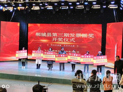 2017年,在縣司法局公證人員和縣監察、財政、國稅、地稅等部門的共同見證下,鄲城縣已經舉辦了兩期發票搖獎,搖出了2位中10萬元的特等獎的參與者和眾多幸運者。
