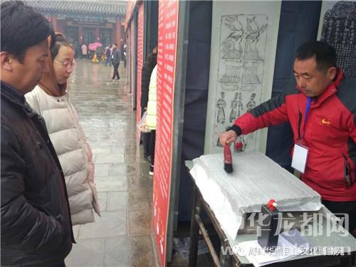 中華龍都網訊(周口報業全媒體記者  徐啟峰)3月25日,淮陽廟會開展一周有余,與廟會同步進行的非物質文化遺產展每天都吸引數萬游人駐足觀看,其中由周口華威民俗文化博物苑提供的傳統農耕文化展、傳統拓片制作技藝更是勾起許多游人的興趣。