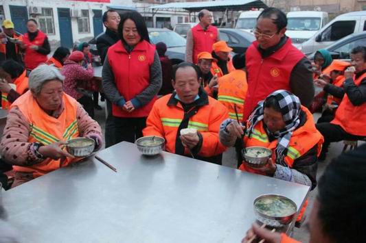 一位老大娘走進就餐點,張玉潔上前把大娘攙扶坐下,忙端來熱騰騰的雞蛋湯、饅頭并讓老人家慢慢吃。老人家哽咽著說:“我是芝麻洼鄉里人,給這住閨女家,走到這見人很多過來看看,沒想到這是免費吃早飯的地方,還都端到跟前、對我恁好,除了俺仨閨女沒有人對我老婆子這樣好過,我是哪輩子修來的福啊!