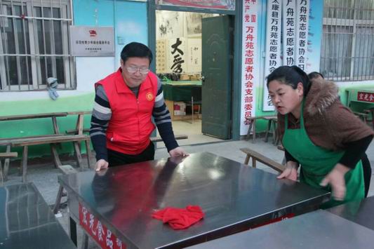 中華龍都網訊(周口報業全媒體記者 馬治衛 通訊員 衡霞光)為弘揚志愿者精神,3月24日,縣直機關工委以張玉潔書記為首的黨員志愿服務隊早早來到愛心早餐現場,他們擺放桌凳,盛菜、盛湯,忙的不亦樂乎,6點準時開飯,張玉潔帶頭把飯菜端到環衛工人面前,作為黨員志愿者,她身先士卒、帥先垂范、受到環衛工人的一致稱贊。
