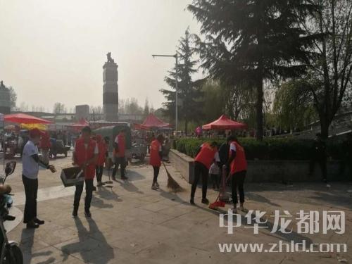 下午3點30許,移動公司鹿邑分公司自發組織30多名志愿者,開始對太清宮文化廣場進行垃圾清理。