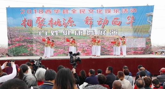 中華龍都網(wǎng)訊(周口報業(yè)全媒體記者 張猛)在西華縣第十四屆桃花節(jié)期間,由縣委宣傳部、縣文廣新局主辦的“相聚桃源 舞動西華”百姓健康舞展演活動,在黃橋鄉(xiāng)萬畝桃園舉行,來自全縣的10 余支舞蹈隊(duì)參加展演。活動吸引眾多市民、游客前來觀看。