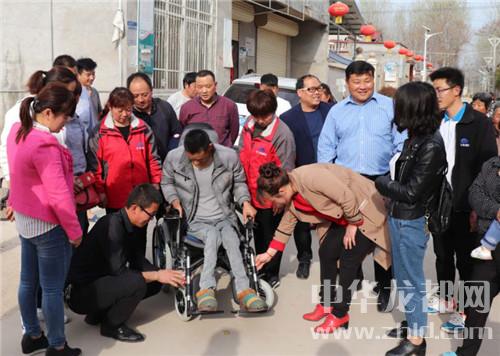 中華龍都網訊(周口報業全媒體記者 李瑞才 通訊員劉傳保 胡洪濤圖文)前不久,本網曾報道了鹿邑太清宮鎮男子王成濤因從10樓墜落致癱瘓,自愿捐出器官救別人的事跡,看到報道后,許多網友紛紛稱贊王成濤。為了方便王成濤活動,近日,在鹿邑縣委宣傳部、縣文明辦的倡導和參與組織下,鹿邑星宇電子商務有限公司的總經理王朝華、郭彥山,副總經理孫永建等人來到了太清宮鎮楊橋村,專門為王成濤送來他們在網上訂購的電動輪椅。