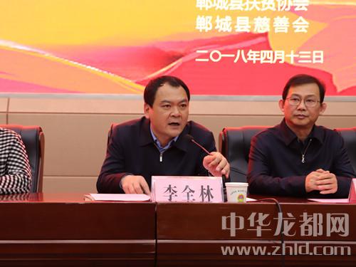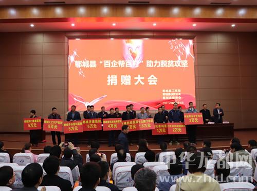 中華龍都網訊(周口報業全媒體記者 徐松 文/圖)4月13日,鄲城縣召開“百企幫百村”助力脫貧攻堅捐贈大會,全縣129家企業反哺社會助力脫貧攻堅,現場捐贈近1300萬元。鄲城縣四個班子領導、部分縣處級領導干部、縣慈善會會長、縣扶貧協會會長、縣直各單位和鄉鎮負責人等參加捐贈大會??h委書記羅文閣發表講話,縣長李全林主持會議。