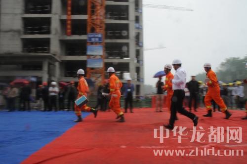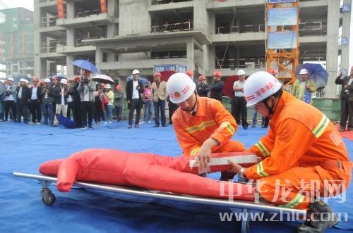 中華龍都網訊(周口報業全媒體記者 朱海龍)5月11日上午,在商水縣建業城項目施工工地,商水縣舉辦建筑施工現場應急救援演練,200多人冒雨觀摩現場演練。
