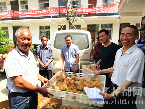 中華龍都網訊(周口報業全媒體記者 劉彥章)5月13日,淮陽縣黃集鄉人民政府在鄉政府院內組織簡短儀式,熱烈歡迎縣政協委員、鄭州珍之韻公司董事長丁偉來到黃集鄉為貧困戶免費發放雞苗。