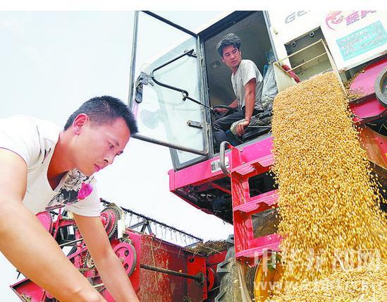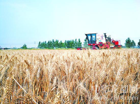 5月27日,川匯區搬口辦事處農民開始收割小麥。當下,我市小麥陸續成熟,農民兄弟紛紛抓緊有利時機收割小麥,確保顆粒歸倉。記者 劉俊濤 攝