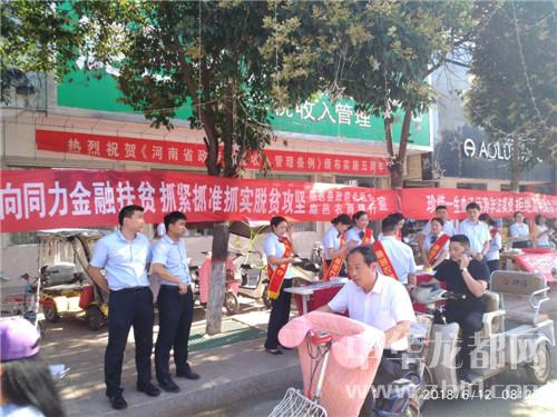 中華龍都網(wǎng)訊(周口報業(yè)全媒體記者 李瑞才 通訊員 任留兵)6月12日上午,鹿邑縣金融辦、縣公安局、縣扶貧辦及轄區(qū)各大銀行,在縣政府大門東側(cè)集中宣傳并向過往市民詳細(xì)講解小額信貸惠民政策和防范非法集資知識,希望通過政策引領(lǐng)助力廣大群眾實現(xiàn)創(chuàng)業(yè)創(chuàng)收夢想。縣委書記梁建松、常務(wù)副縣長陸志杰到活動現(xiàn)場指導(dǎo)工作。各脫貧攻堅責(zé)任銀行行長及縣金融辦工作人員現(xiàn)場接受群眾咨詢,氣氛非常熱烈,取得了良好的宣傳效果。