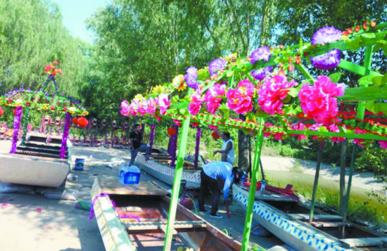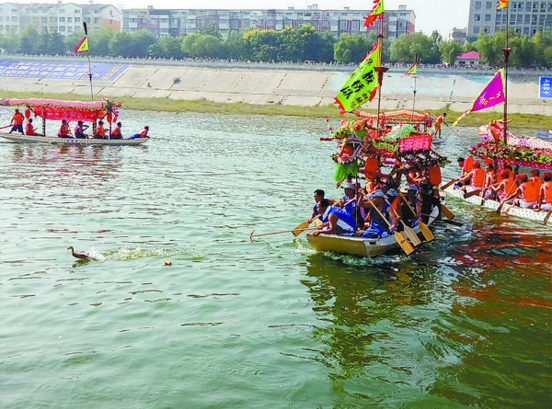 據了解,周口翎船有著100多年的歷史,翎船因其身較短,平頭柳葉形,輕捷靈便,獨具特色,加上每個翎船不惜重彩“打扮”,裝飾各有差異,有別于南方的龍舟。記者 張志新 攝