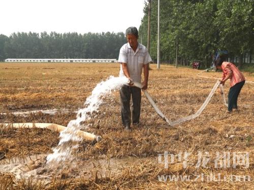中華龍都網訊(周口報業全媒體記者 李瑞才 通訊員 胡洪濤 孫廣合)6月17日,鹿邑縣鄭集鄉曹牌村農民曹昌文在抗旱澆地。 自6月初進入“三夏生產”以來,連續高溫無有效降水,全縣受旱面積達到50多萬畝,為應對持續發展的旱情,鹿邑縣緊急召開抗旱保秋工作推進會,安排部署全縣上下集中力量投入抗旱,爭取用10天左右的時間把全縣50多萬畝秋作物澆灌一遍。和鄭集鄉一樣,目前,鹿邑全縣農村已迅速掀起抗旱保苗高潮。