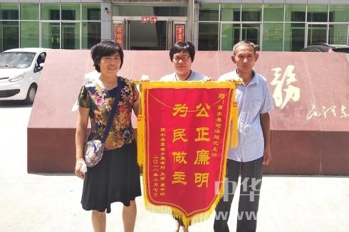 中華龍都網訊(周口報業全媒體記者 付永奇 通訊員 王飛) 6月18日,商水縣袁老鄉袁 老村的王某、袁某二人專程來到縣法律援助中心,將一面印有“公正廉明 為民做主”的錦旗 送到工作人員手中,以表達對縣法律援助中心和援助律師的感激之情。