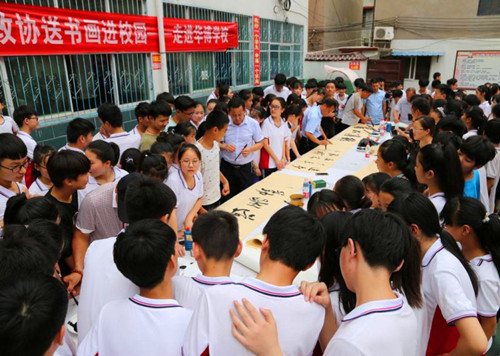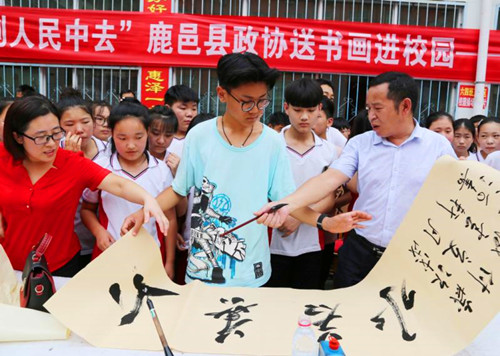 鹿邑:10余位書畫家校園送“精神食糧”