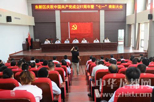本報訊 (記者 張勁松 通訊員 王艷霞 文/圖) 6月22日,東新區召開慶祝中國共產黨成立97周年暨表彰先進大會(如右圖)。東新區黨工委書記閆立超出席會議并講話,東新區全體班子成員在主席臺就座。區直機關全體科級干部,各鄉(辦)書記、副書記、組織委員和組織干事,基層行政村(社區)黨支部書記、2018年新黨員代表以及受到表彰的先進基層黨組織負責人、優秀黨務工作者、優秀基層黨支部書記和優秀共產黨員等共計170余人參加會議。會議由東新區管委會主任張建黨主持。