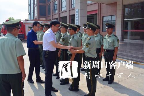 7月31日,開發區黨委書記田林,開發區管委會主任王文峰,開發區黨委委員、市公安局太昊路分局局長孟慶嶺等來到開發區消防大隊,走訪慰問。
