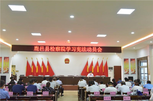 為了弘揚憲法精神,切實履行憲法定位,達到學習憲法、理解憲法、維護憲法、運用憲法的目的,7月30日,鹿邑縣檢察院召開學習憲法動員會。縣紀委監委駐檢察院紀檢監察組長、黨組成員王首功對憲法的序言和憲法修改的背景進行了細致的解讀。院黨組書記、檢察長魯建軍在主席臺下認真聽、認真記,作為一名普通干警一起認真聆聽了憲法解讀。