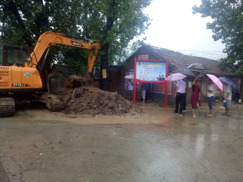 “馬莊村李平路西側(cè)溝渠橋下障礙物阻塞,排水不暢,馬上會出現(xiàn)內(nèi)澇,情況危急!”8月18日上午10時(shí)許,商水縣練集鎮(zhèn)黨委書記張妍燕、鎮(zhèn)長劉景明接到群眾電話,即刻趕往現(xiàn)場,并安排鎮(zhèn)機(jī)關(guān)干部出動,組織機(jī)械進(jìn)行清淤。