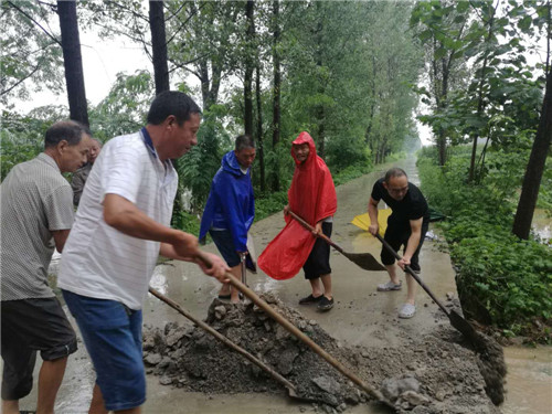 8月19日早7點,陳留張駐村工作隊長李成功、村副主任張建靈發現險情后,便開始緊急會商,提出科學搶修方案。最后確定,調用本村的鏟車,利用本村商砼站的石料,組織本村的村民,迅速趕赴事發地點開展搶修工作。