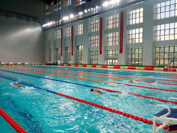 據了解,市游泳館占地面積4.4萬平方米,總建筑面積24398.69平方米,地上建筑面積20846.08平方米,地下建筑面積3552.61平方米,地上三層、地下一層,可容納觀眾1200人。市游泳館內共有兩個大的泳池,一個比賽用,長50米、寬25米,規格達到奧運會游泳比賽泳池標準,比賽時水深將達到2米;另外一個練習用,供參賽選手熱身,水深1.2米。