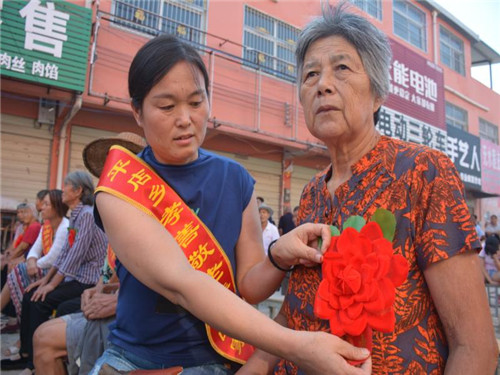 據平店鄉黨委書記陳靜介紹,近年來,該鄉始終把孝善文化建設擺在突出位置,堅持以扶貧與扶智、扶貧與扶德相結合,持續開展了“好媳婦、好婆婆、好兒子、脫貧光榮戶”評選等一系列豐富多彩的精神文明創建活動,積極倡樹社會正氣,大力弘揚時代新風,推進了良好的家風、民風、鄉風持續向前發展。為持續做好全鄉脫貧攻堅各項工作,全鄉28個行政村、87個自然村共集中排查出來268戶、363人獨居老人戶,95%以上屬于破舊危房。通過宣傳發動,現在已經接回家300多人,對破舊危房全部進行了拆除或封堵。今天受到表彰授牌的28個家庭是在“孝善敬老、讓愛回家”活動中涌現出來的“孝善敬老”的模范和標兵。