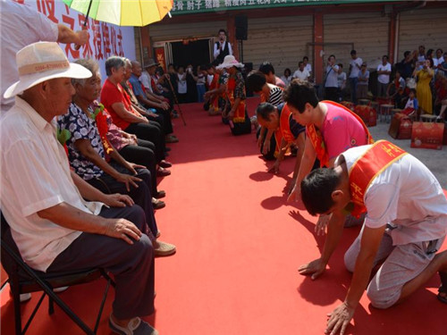 鄉長吳國鋒發表了熱情洋溢的致辭。他首先代表平店鄉黨委、政府、人大向受到表彰的先進模范和先進家庭表示熱烈的祝賀并致以崇高的敬意。并詳細闡述了開展“孝善敬老讓愛回家、孝賢之星表彰授牌暨解決獨居老年人問題、助力脫貧攻堅的重大意義,他希望受到表彰的先進代表和家庭要珍惜榮譽、再接再厲,繼續弘揚尊老、敬老、養老、愛老的傳統美德,推動全鄉“孝善敬老”文化不斷邁向新臺階。活動現場宣讀了《平店鄉人民政府敦促將被贍養人接入安全住房共同生活的通告》;與會領導為孝賢之家頒獎授牌;28個“孝子孝媳”在臺上統一施行叩拜大禮;活動結束后,鄉政府指派3名班子領導和10多名工作人員,分別乘坐6臺輛,由嗩吶隊開路,風風光光把28個老人送回了家。一路引來不少群眾駐足注目觀看,廣大群眾對此嘖嘖稱贊、拍手稱快。