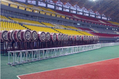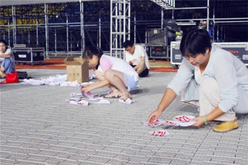 在場地的一側,幾名工作人員正在全神貫注地整理一大堆號碼貼,“省運會是全省的體育盛會,能有機會參與這樣的運動會是一種榮幸,我們準確地說應該算是志愿者,因為我們屬于義務勞動。”其中一名女士說,這是細活,急不得,號碼非常多,英文中的26個字母,分大小寫,然后還和阿拉伯數字進行組合,她們的工作就是要把這些號碼捋順,防止出現差錯。記者注意到,場地的四周放置了很多音響,工作人員正在對播音設備進行調試,雖然還處于調試階段,但是聽起來已經非常震撼。在場地旁邊,部分表演道具也整齊擺放著,看到這些精致的道具,開幕式當天的文藝表演精彩程度可見一斑。