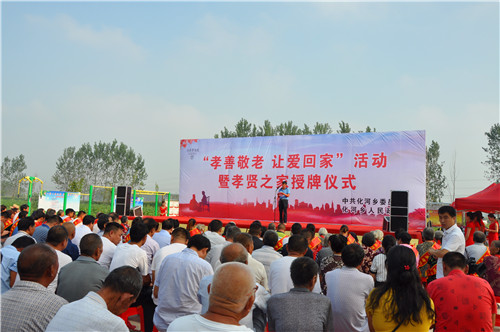 8月30日上午,化河鄉“孝善敬老 讓愛回家”活動暨孝賢之家授牌儀式在該鄉高老村文化廣場舉行。縣委常委、統戰部長李遠富、副縣長何海中、縣工會主席盧紅兵應邀出席。化河鄉黨政班子和近千群眾參加了活動儀式。
