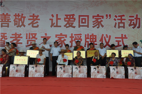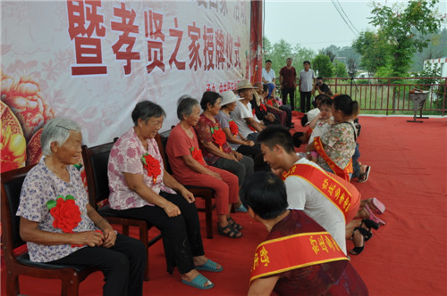 大會開始之前,來自該鄉20個行政村的廣場舞代表隊、戲曲代表隊、嗩吶代表隊先后出場,訾秀玲一曲《黃土高坡》贏得全場觀眾雷鳴般掌聲。緊接著,好兒子、好媳婦代表上臺為自己的父母磕了3個響頭,以表達對父母養育之恩的感激之情,老人們臉上流露出激動和幸福的淚水,現場掌聲經久不息。縣領導在主席臺上為36個孝賢之家授牌,并向獲獎者表示祝賀。據介紹,該鄉自開展孝善敬老接老人回家活動以來,已有200多名獨居老人被兒子、媳婦接回家居住。為了表彰接老人回家的好兒子、好媳婦和孝賢之家,該鄉組織、策劃了這次大型活動。