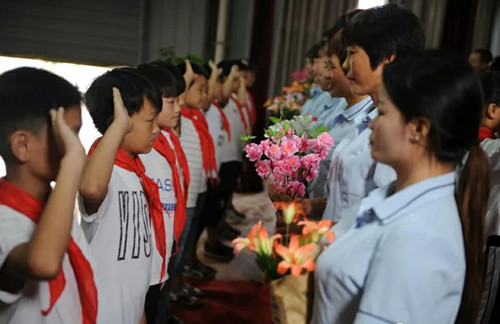 "老師,您辛苦了!"9月6日,商水縣北極星學校舉行了慶祝全國第34個教師節暨表彰大會。該校少先隊員集體給所有老師送上了鮮花,并獻上歌曲《每當我走過老師的窗前》。