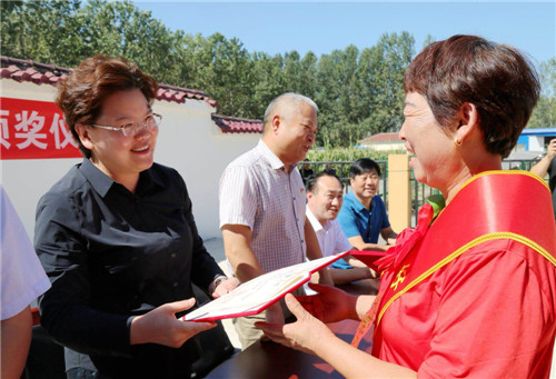 9月7日上午,扶溝縣白潭鎮小崗行政村文化廣場上一片喜氣洋洋,披紅戴花的“好婆婆”“好媳婦”和文明衛生戶們自豪地從扶溝縣長張穎波、市城市管理局局長程俊華等領導手中接過榮譽證書和獎品,高興地合不攏嘴,臺下觀看的村民把巴掌拍得山響。