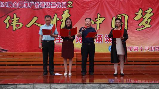 周口十八中、鄲城第二實驗中學舉辦了推普周誦讀比賽,在比賽中學校倡議全體師生立即行動起來,從自身做起,從現在做起,人人講普通話,時時講普通話,處處講普通話。扶溝縣實驗小學舉行了推普周主題升旗儀式,向學生介紹了推廣普通話和使用規范字的意義。據了解,周口市各縣區都開展了相應的主題班會、書法比賽、街頭宣傳等推普周主題活動。