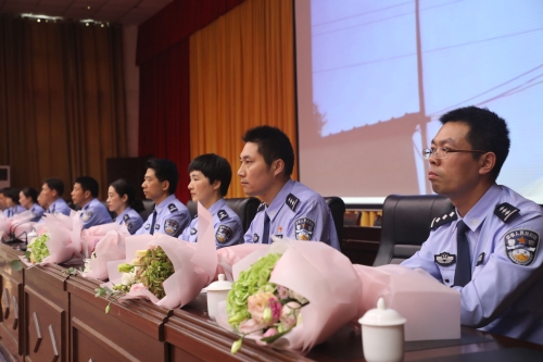 縣委組織部、縣總工會、縣法院、縣檢察院、共青團(tuán)鹿邑縣委、縣婦聯(lián)、縣財政局、縣司法局負(fù)責(zé)同志和鹿邑縣部分人大代表、政協(xié)委員、警嫂代表以及鹿邑公安民警約320人在臺下認(rèn)真聆聽報告。