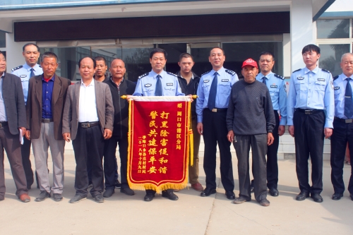 10月9日上午,李埠口鄉孫莊村數十名群眾代表,來到周口市公安局港區分局,將寫有“打黑除害促和諧,警民共建保平安”的錦旗和感謝信送到何學民政委的手中,村民代表對分局鐵腕鏟除該村“村霸”維護孫莊村和諧穩定表示由衷的感謝。