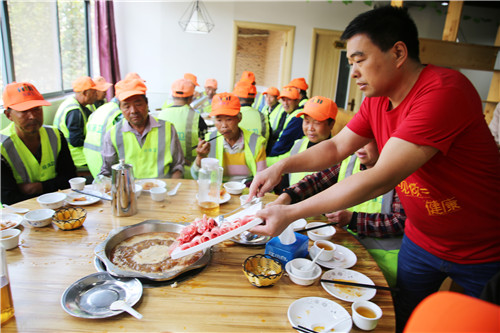 姜玉伸是承擔(dān)鳴鹿路北段保潔任務(wù)的一名老環(huán)衛(wèi)人,他告訴記者:“從今天夏天開(kāi)始,該店就在店里設(shè)置了環(huán)衛(wèi)工人免費(fèi)休息飲水點(diǎn),有時(shí)候工作量大的時(shí)候,中午回不了家,店老板就讓我們?cè)陲埖昝赓M(fèi)就餐。今天,該店又準(zhǔn)備了免費(fèi)火鍋,讓我們提前過(guò)重陽(yáng)節(jié),我們感覺(jué)心里暖暖的。”