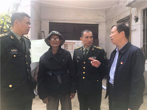 當日上午,川匯區武裝部一行和愛心企業“佳麗地產”黃經理一行到中心城區城南辦事處走訪了90歲抗戰老兵王四海。王四海1948年參軍入伍,隨部隊一同南征北戰,參加解放海南島等戰役。同時,他們還慰問了參加對越自衛反擊戰的62歲老兵李士明等幾名貧困群眾,為他們送去了米面糧油、軍被等慰問品。